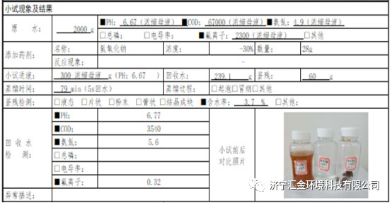 廢水原水為溶劑精餾塔將溶劑精餾回收后,釜底剩余的含鹽廢水,經(jīng)濃縮后進(jìn)入脫水干燥工序,經(jīng)上工序濃縮后的高鹽含氟廢水含鹽量≥190000ppm,廢水成分較為復(fù)雜,主要鹽分為氟硼酸鈉、氟硼酸銨,另有少量合成反應(yīng)產(chǎn)生的側(cè)鏈,副反應(yīng)產(chǎn)物,原水由兩股廢水混合而成。